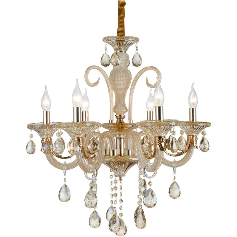 Lampadario da 6 luci lampada In vetro Cristallo dorato 2076-6 Questo lampadario delle linea 2076 da 6 luci in vetro cristallo dorato in stile vittoriano è perfetto per arredamenti classici o realizzati in stile moderno dando con un tocco di antichità ed eleganza. Può essere impiegato per l'illuminazione di ambienti come: camera da letto, soggiorno, sala pranzo, cucina e corridoio. Questo prodotto è realizzato nel rispetto delle norme CE ed è rifinito nei minimi particolari. L'altezza è facilmente regolabile tagliando la catena, inclusa nella confezione. Si possono installare tutti i tipi di lampadina E14, sia led, neon fluorescenti che alogene, per una portata massima di 40w per ogni porta lampada Le lampadine a LED in foto sono vendute separatamente, di seguito il link: https://www.silamp.it/lampadina-led-luce-calda-e14-6w-colpo-di-vento-attacco-piccolo-lampadine-led-p-699.html ISTRUZIONI DI MONTAGGIO PDF . Manutenzione: Il lampadario è facilmente pulibile con uno spolverino o con un
