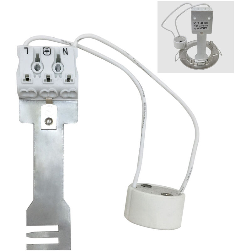 Supporto per faretto led attacco GU10 Si tratta di un supporto che va inserito nella ghiera GU10 per facilitare l'installazione dei faretto GU10. Il supporto è provvisto di messa a terra per evitare il rischio di scosse elettrostatiche. Dimensioni: larghezza 30mm altezza 100mm Contenuto della confezione: -1 supporto GU10 -1 attacco GU10 Articolo compatibile con le seguenti ghiere: Codice: 57_101_SH https://www.silamp.it/faretto-incasso-orientabile-acciaio-spazzolato-farettino-spot-ghiera-acciaio-p-16.html Codice: 57_121_WH https://www.silamp.it/faretto-incasso-fisso-bianco-farettino-spot-ghiera-acciaio-da-incasso-gu10-bianco-p-118.html