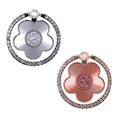 Silars Anello per Cellulare Fiore, 2pz Supporto Dita Cellulare in Metallo Anello Telefono Adesivo, Supporto per Anello per Telefono con Diamante Compatibile con La Maggior Parte dei Telefoni (B)