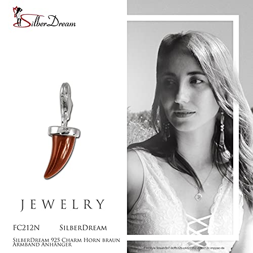SilberDream Charm gioielli in argento 925 con ciondolo a forma di corno marrone FC212N, Argento sterling