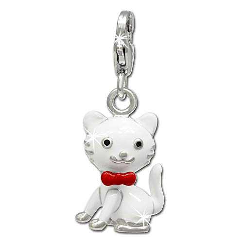 SilberDream - Charm con piccolo gatto bianco in argento per collane e braccialetti, in argento sterling 925 FC693