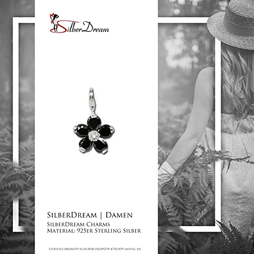 SilberDream 925 Ciondolo in Argento Sterling fiore nero ciondolo per collane bracciale orecchino FC4115