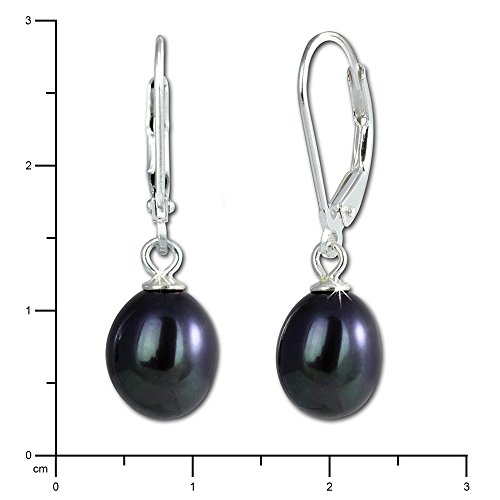 SilberDream orecchini perla-acqua dolce 9 mm Nero 925 in argento Sterling Orecchini SDO168S
