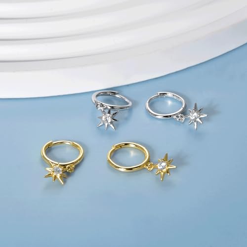 ✦ Graziosi orecchini a cerchio con graziosi ciondoli, orecchini a cerchio con occhio malvagio, orecchini a cerchio Boho Starburst, graziosi, sottili, per vestirsi o tutti i giorni.