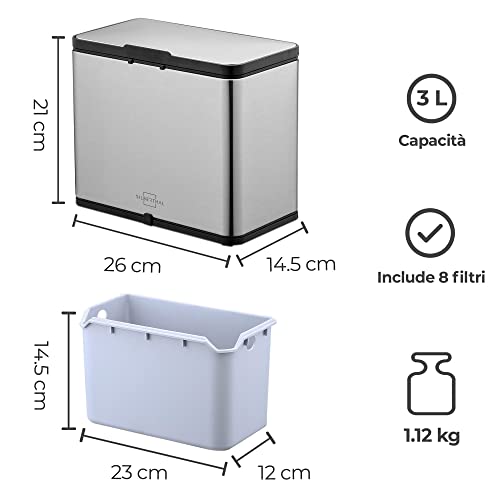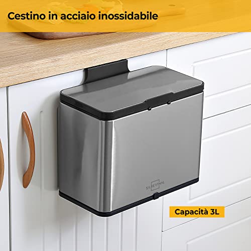 SILBERTHAL Cestino Raccolta Organico Acciaio Inox 3L | Cestino per Umido con 8 filtri | Pattumiera rifiuti sottolavello