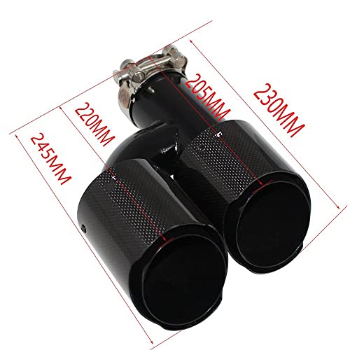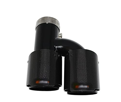 Silenziatore Terminale Punta Silenziatore Lucida Fibra Carbonio Nera per Auto A Forma H Ugello per Silenziatori Tubo Scarico A Doppia Uscita Acciaio Inossidabile Universale Scarico Tubo