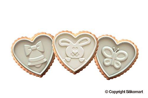 Include1 stampo in silicone + 1 tagliapasta dotato di manico intercambiabile per realizzare deliziosi biscotti