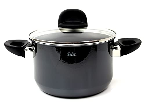Silit Modesto - Set di 5 Pezzi con Coperchio in Vetro, Silargan Funzione Ceramica, Beccuccio Versatore, per Induzione, Nero