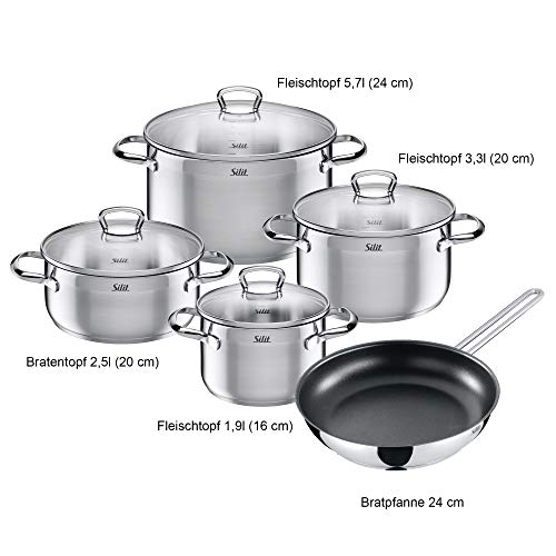 Silit - Set di 5 Pezzi Toscana Schuett Bordo Vetro Coperchio in Acciaio Inox opacizzato ad induzione Lavabile in lavastoviglie.