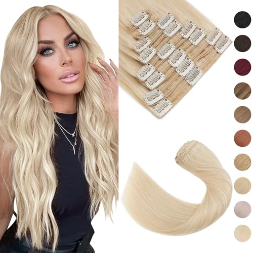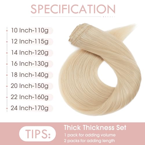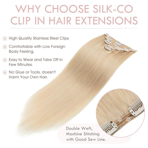 Silk-co 50cm Capelli Veri con Clip Double Weft 150g Extension Capelli Vergine 8 Pezzi 18 Clips in Extension Remy Hair - 24 Biondo Naturale
