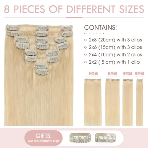 Silk-co 50cm - Extension Capelli Veri Clip 8 Pezzi #613 Biondo Sbiancante Remy Human Hair Clip in Extension 105g Capelli Brasiliani Lisci 18 Clips