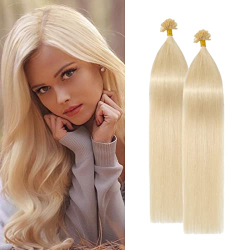 Silk-co 55cm Extension Capelli Veri Cheratina 100 Ciocche #613 Biondo Sbiancante Capelli Umani Brasiliani 1g/ciocca U-Tip Bonding Remy Hair