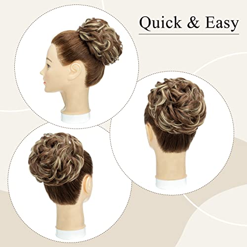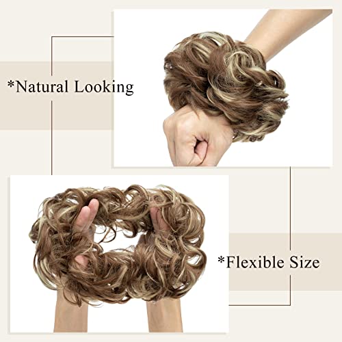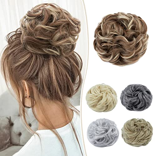 Silk-co 55g Chignon Capelli Finti con Elastico Posticci per Capelli Ciambella Messy Hair Bun Updo Extension # Marrone Chiaro Mix Biondo Cenere
