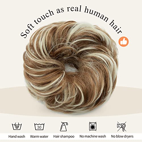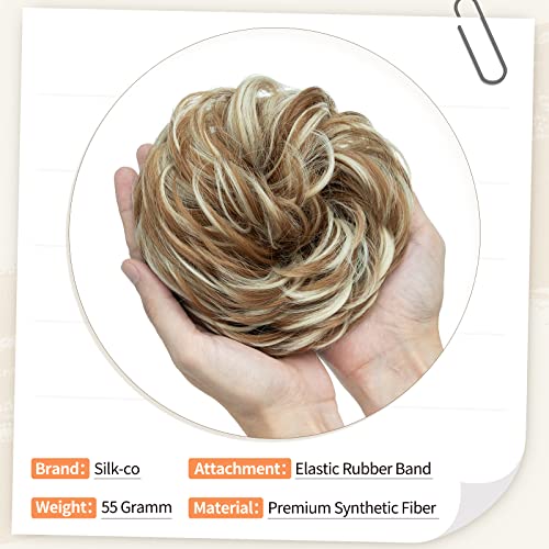 Silk-co Ciambella per Chignon Extension Elastico Posticci per Scrunchie Chignon Capelli Finti Hair Bun Updo Coda Capelli Mossi 55g-# Marrone Sabbioso Mix Biondo Sbiancante