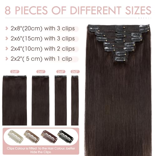 Silk-co Clip Extension Capelli Veri Double Weft 120g Extension Capelli Umani 8 Pezzi Clip in Extension Remy Hair 35cm - 2 Marrone Scuro