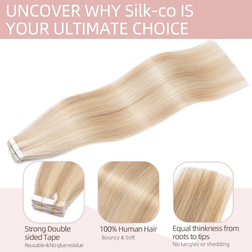 Silk-co Extension Biadesive Capelli Veri 10 PCS 45cm 25g Biondo Cenere & Biondo Sbiancante Extension Capelli Veri Biadesivo Lisci Remy Hair Extension Invisibili