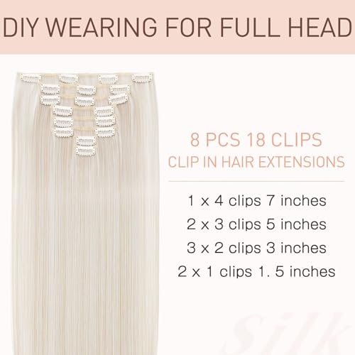 Silk-co Extension Capelli Clip 8 Fasce Full Head Extension Sintetiche Capelli Lisci Colorati Finti Clip in Extension 66cm-Biondo Mix Grigio Argento