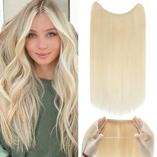 Silk-co Extension Capelli Veri con Filo 40cm Wire in Extension Capelli Veri Fascia Unica Filo Invisibile 60g - 60 Biondo Platino