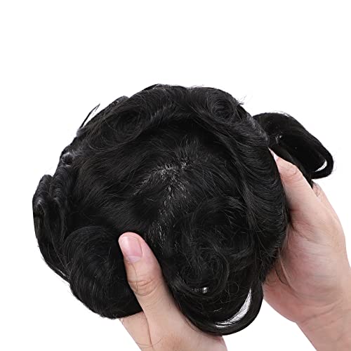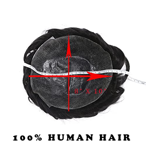 Silk-co Toupee Uomo Capelli Veri #1B Nero Naturale Parrucca Corta 20cm*25cm Remy Hair Topper Extension Capelli Umani Indiani - Base: PU(0.1mm)