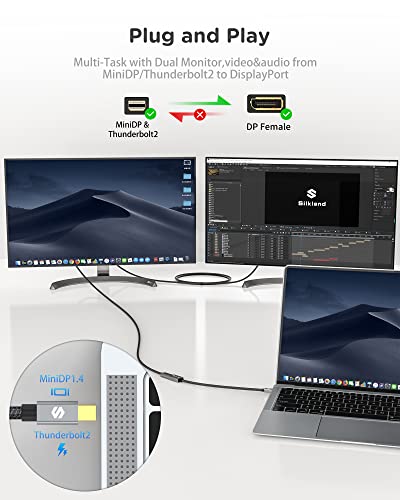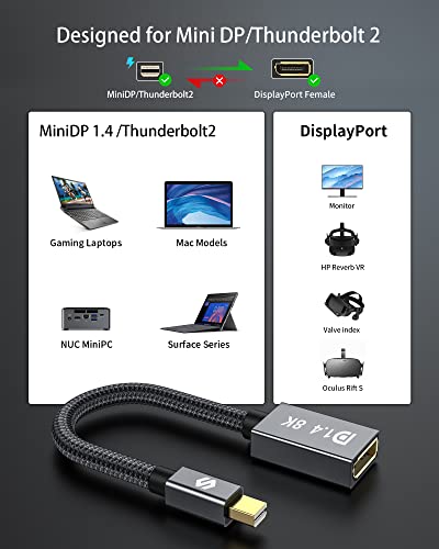 Silkland Adattatore da Mini DP 1.4 a DP 8K@60Hz 4K@144Hz, Convertitore Thunderbolt 2 Nylon con HDR HBR3 G-Sync FreeSync, Adattatore da Mini Displayport a Displayport per Laptop MacBook iMac Monitor VR