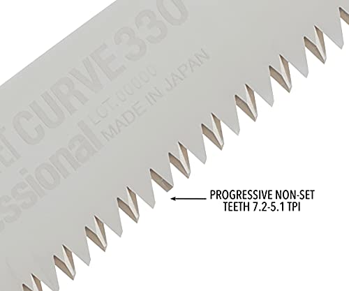 Leggermente curvo, in modo che la sega si afferri facilmente e passi attraverso il legno in modo aggressivo - particolarmente adatto per legno fresco
