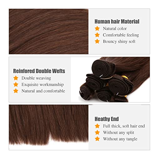 Silky straight Weaves for WIG making 8“ X4pcs, 10" X1pc, 12" X1pc Human Hair Bundles 6pcs Totale 200g Color #4 Medium Brown Remy Hair Extension