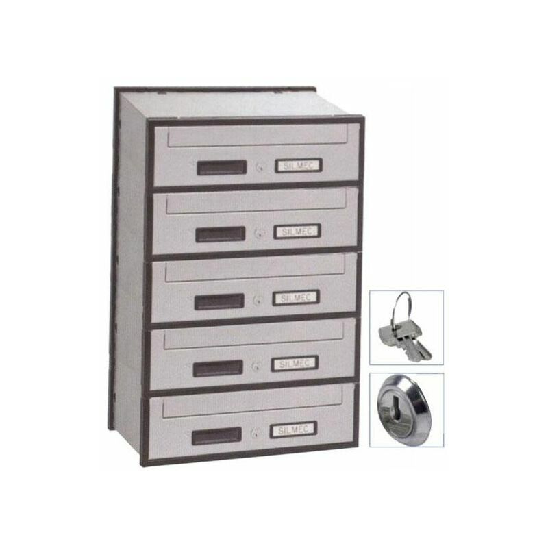 Codice: 8025095201844 Marca: SILMEC. Casellario postale per esterni con mantello SC5 Corpo acciaio zincato - Portine alluminio silver Portine oscillanti - Serrature cilindro 2 chiavi Lato frontale per imbucare e ritirare Dimensioni cm 40,5x29,5 h 63,5 - Orizzontale
