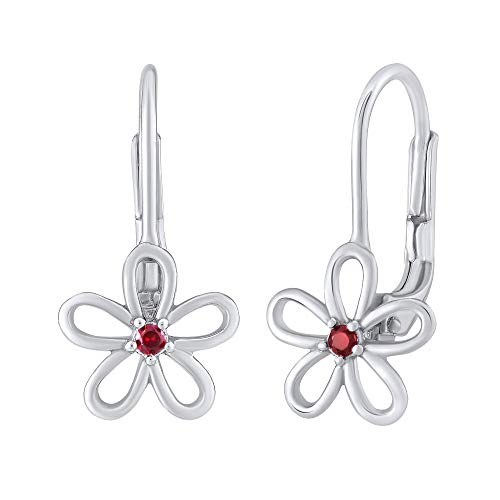 SILVEGO Orecchini da Donna in Argento 925 Fiore con Pietra Rossa