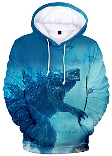 Silver Basic Film di Godzilla vs Kong Maglia Cosplay Godzilla Costume Felpa con Cappuccio per Bambini e Ragazzi,Blu 3512-2,XXS