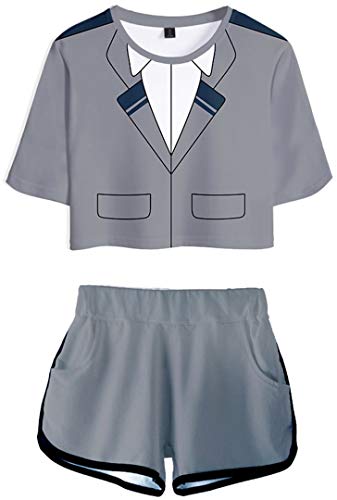 Silver Basic Hero 3D Digitale Maglietta e Pantaloncini Uraraka Bankugou Costume Vestiti,Tuta Completo-3,S