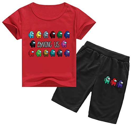 Silver Basic Unisex Video Gioco Stampa Maglietta e Pantaloncini Cosplay Impostor Vestiti Corte per Bambina,Rosso C-1,100