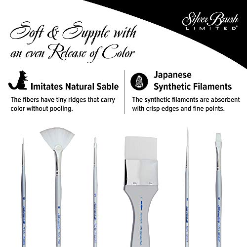 Silver Brush Argento-Spazzola Serie 1507s, Colore: Bianco Argentato Script Liner-Pennello Sintetico con Manico Corto, Colore: Bianco, Argento Lucido, Taglia 1
