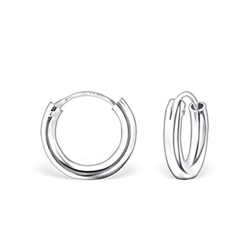 DTP Silver - Orecchini a Cerchio/Creola - Argento 925 - Piccola Dimensione - Spessore 3 mm - Diametro 14 mm