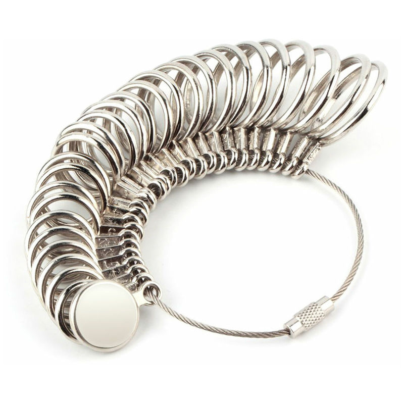 Gli anelli vengono utilizzati per testare la misura del tuo dito, mentre la misura sul bastoncino è la misura del tuo anello. È leggero e maneggevole. Tabella delle taglie di facile lettura sul mandrino per taglia intera e mezza, con segni di linea sull'albero per ottenere l'anello prima di qualsiasi misurazione. Perfetto per anelli, ottimo per vetrine. Caratteristiche: Strumento di misurazione dell'asta in metallo con taglie USA 1-15 e taglie UE 41-76.Il bastoncino di misurazione ha dimensioni 2-15 con incrementi di 1/4. Tabella delle taglie di facile lettura sul mandrino per taglia intera e mezza, con segni di linea sull'albero per ottenere l'anello prima di qualsiasi misurazione. Strumento essenziale per qualsiasi gioielliere o chiunque desideri conoscere la propria dimensione esatta. Perfetto per anelli, ottimo per vetrine. Scanalato su un lato per evitare scheggiature. È leggero e maneggevole. Ottima fattura e alta qualità. Durevole e non arrugginisce. Specifiche: Materiali