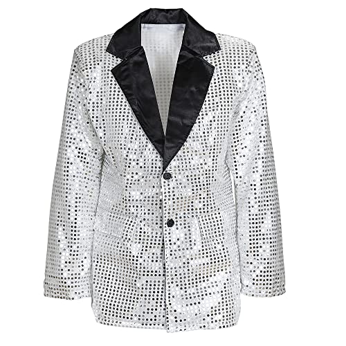 SILVER SEQUIN JACKET WITH SATIN COLLAR" - (XL)