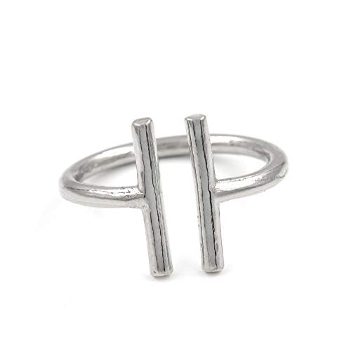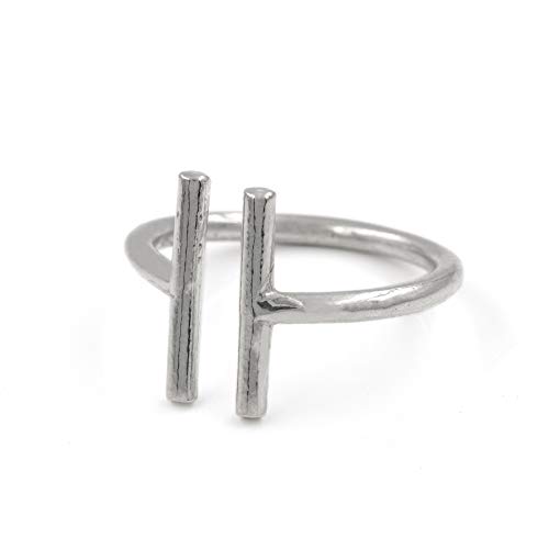 Anello in Argento Sterling Aperta con design di doppia Barra. Taglia Unica regolabile