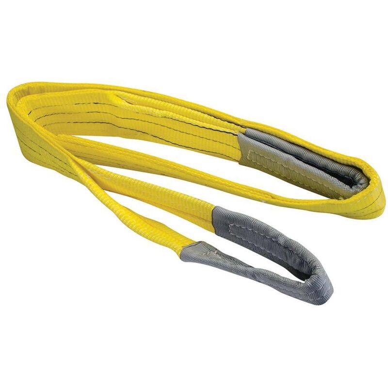 Cinghie di alta Resistenza Piane di rete con rinforzo occhi di sollevamento. 100% poliestere PES. Conforme alla norma EN 1492-1 incluso un Fattore di Sicurezza 7: 1. Solo il 3% di allungamento un massimo Carico. Chimicamente resistente a oli, organici Solventi, alcoli, acids e Acqua di tra cui l'acqua del mare. 2 m