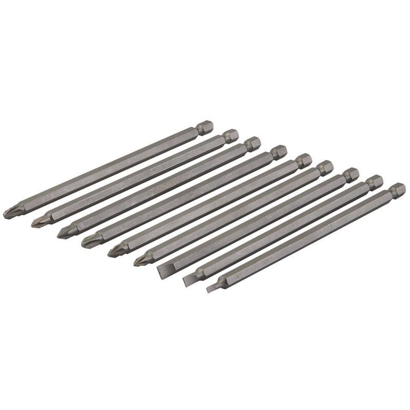 Cromo vanadio.Punte di alta qualita' di extra-lunghi 150 mm. Includere punte scanalate, PZD e Phillips. 150 mm