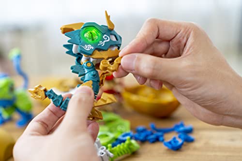 GIOCO DI COSTRUZIONE - Scopri all'interno dell'uovo i diversi pezzi da assemblare per costruire due dinosauri, di cui uno fosforescente ispirato ai Guardiani Orientali.