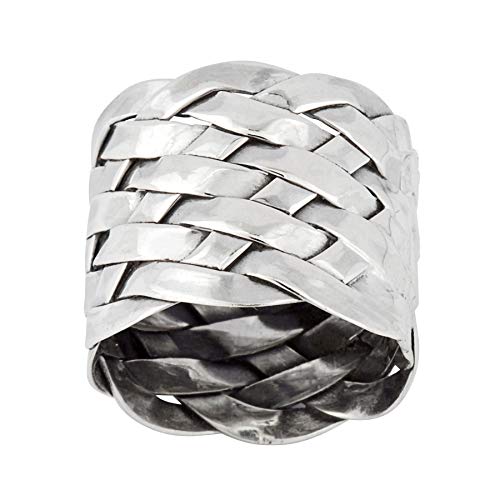 Silverly Anello Argento .925 A Fascia Spesso Maglia Intrecciata