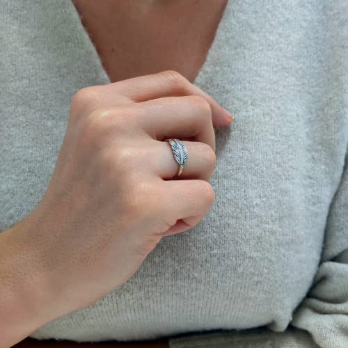 Silverly Anello Donna Argento .925 Ossidato Piuma Foglia Stile Vintage