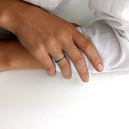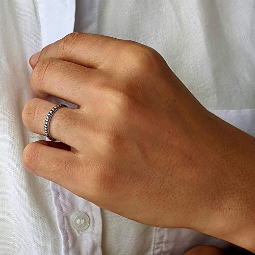 Silverly Anello Donna .925 Argento Sterling Ossidato Fascia Semplice Sottile Borchie Perline