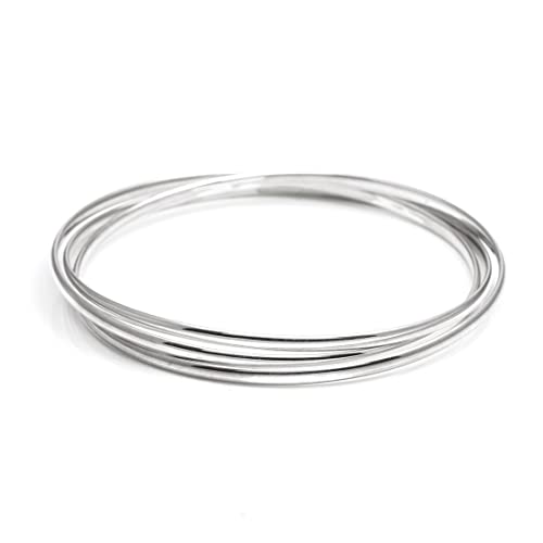 Silverly Bangle Donna Argento .925 3 Bracciali Interconnessi Triplo Bracciale