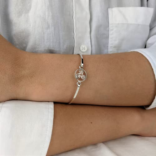 Silverly Bracciale Donna in Argento Sterling .925 Bangle Rigido con Tripla Spirale Triskele Celtica