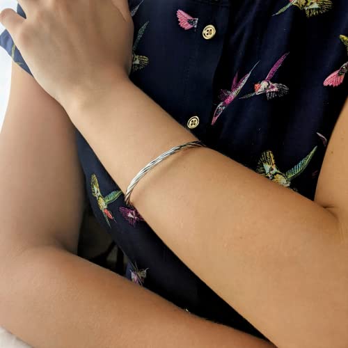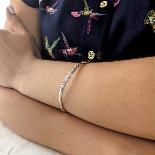 Silverly Bracciale Donna in Argento Sterling .925 Bangle Rigido Rotondo Attorcigliato