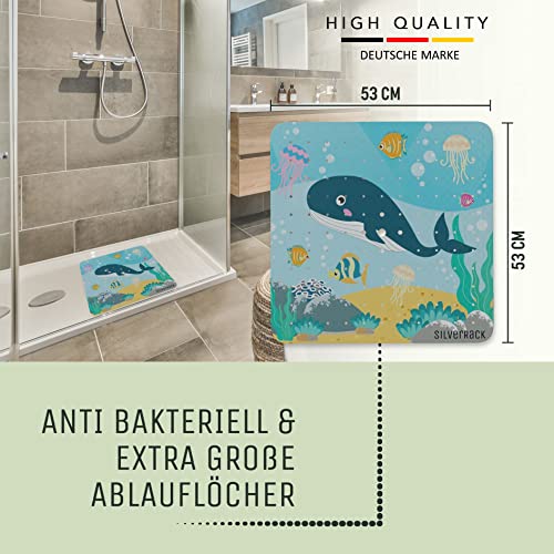 SilverRack Tappetino da doccia per bambini, antiscivolo, 53x53 cm (motivo balena), senza BPA, per bambini, lavabile in lavatrice e resistente alla muffa, tappetino da doccia stampato