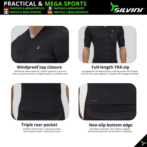 SILVINI ANSINO - Maglia da ciclismo da uomo, a maniche corte, aderente, da ciclismo, da uomo, a maniche corte, da ciclismo, da uomo, colore nero
