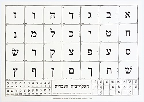Di tutte le lettere dell'alfabeto ebraico - utilizzato per ebraico biblico, aramaico, ebraico moderno e yiddish -, è raffigurata anche la forma corsiva, e quando necessario le varianti;