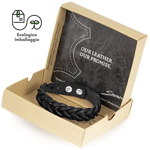 Simaru - Bracciale da uomo in vera pelle vegetale intrecciata, regolabile e Ottone, colore: Nero
