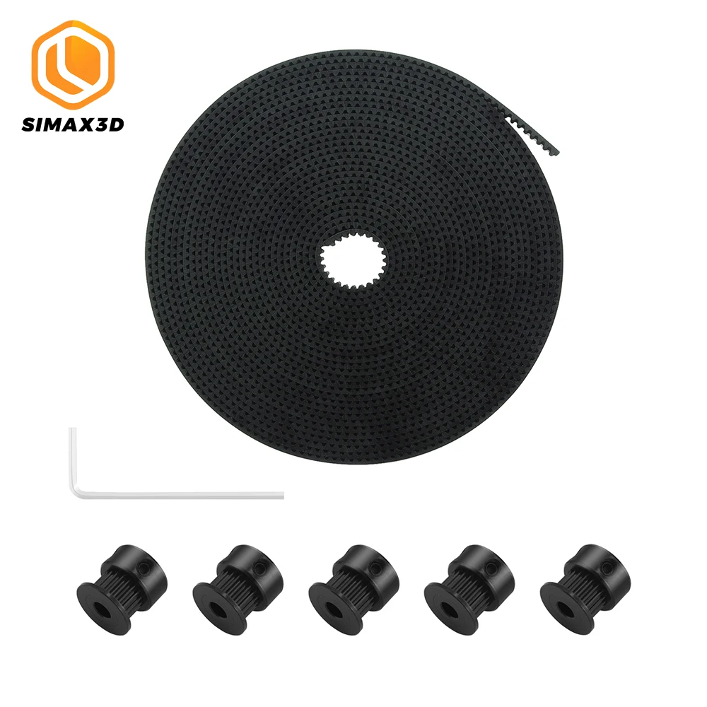 SIMAX3D 5m/lot GT2 Timing Belt + 5pcs Tooth 20mm Bore 5mm Width 6mm Black Timing Pulley + M3 Screwdriver for 3D Printer Parts